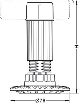 Posibilitate reglaj la o încărcare a corpului de mobilier ≤ 80 kg, poate fi mărită la 110 kg/picior folosind suport înălțător ABS articol nr. 637.76.423